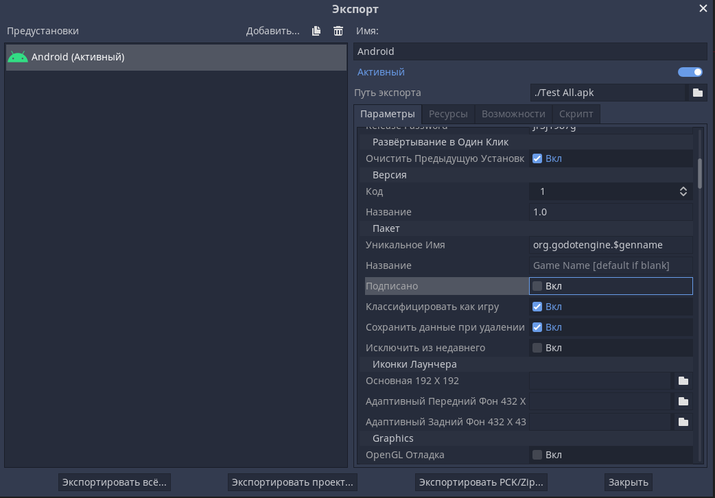 Теперь, нужно будет просто выбрать созданный вами в Godot файл apk и нажать кнопку "Подписать"